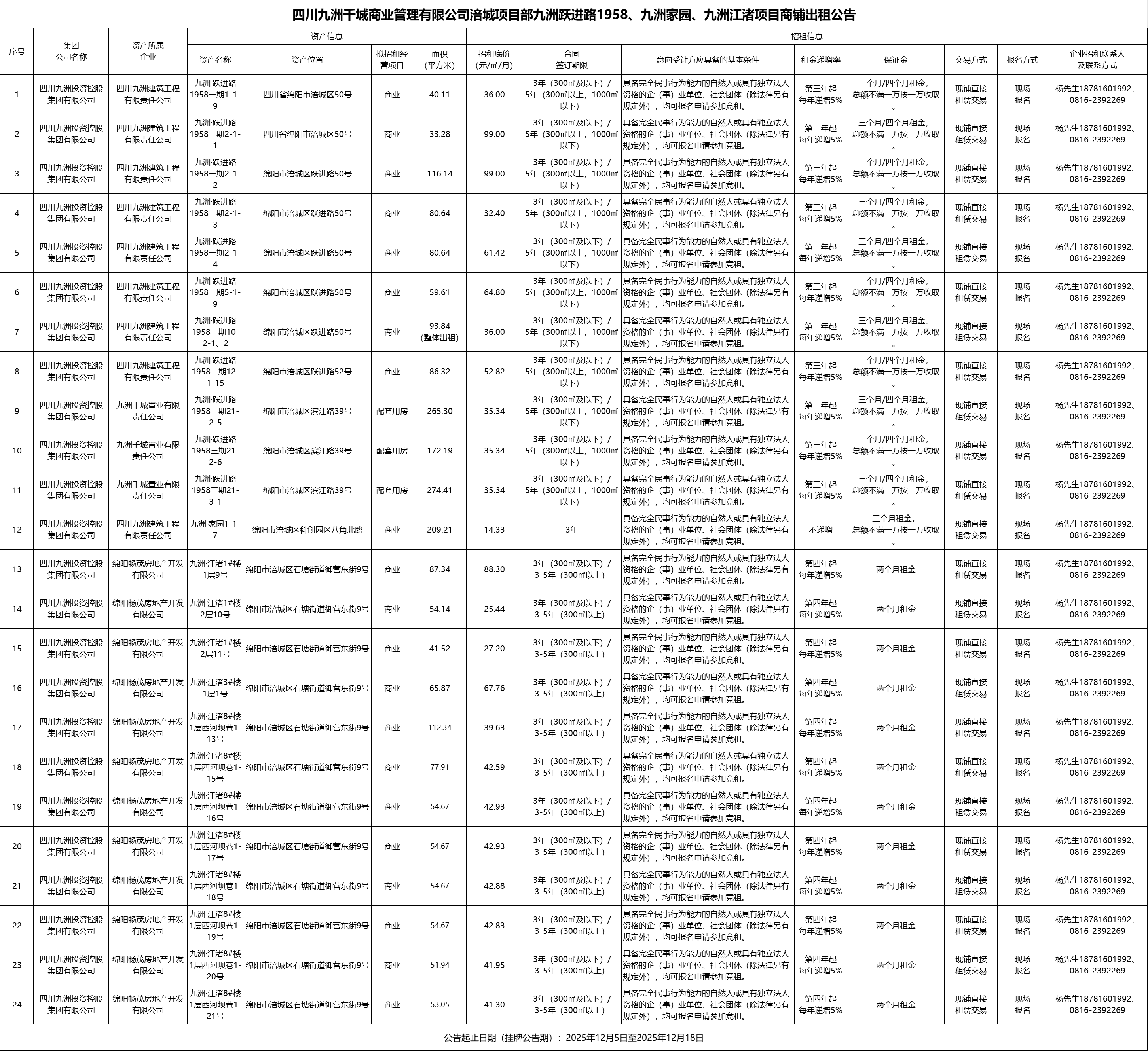 四川九洲千城商业管理有限公司涪城项目部九洲跃进路1958、九洲家园、九洲江渚项目商铺出租公告
